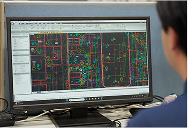 各種設備の調査から取付、調整までを一貫して担っている業務です。また、請け負 う物件ごとに営業担当と工事担当がそれぞれ割り当てられ担当者がそれぞれ責任 をもって業務を遂行しています。