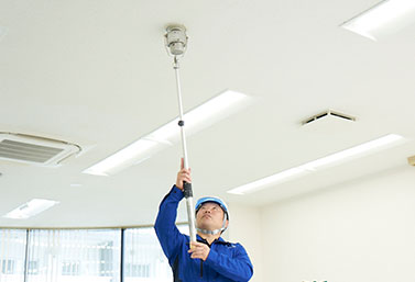 建物内の消火器、誘導灯などの消防用設備のメンテナンスを行い、人々の生活のさらなる安全を守ることが 私たちの役目です。